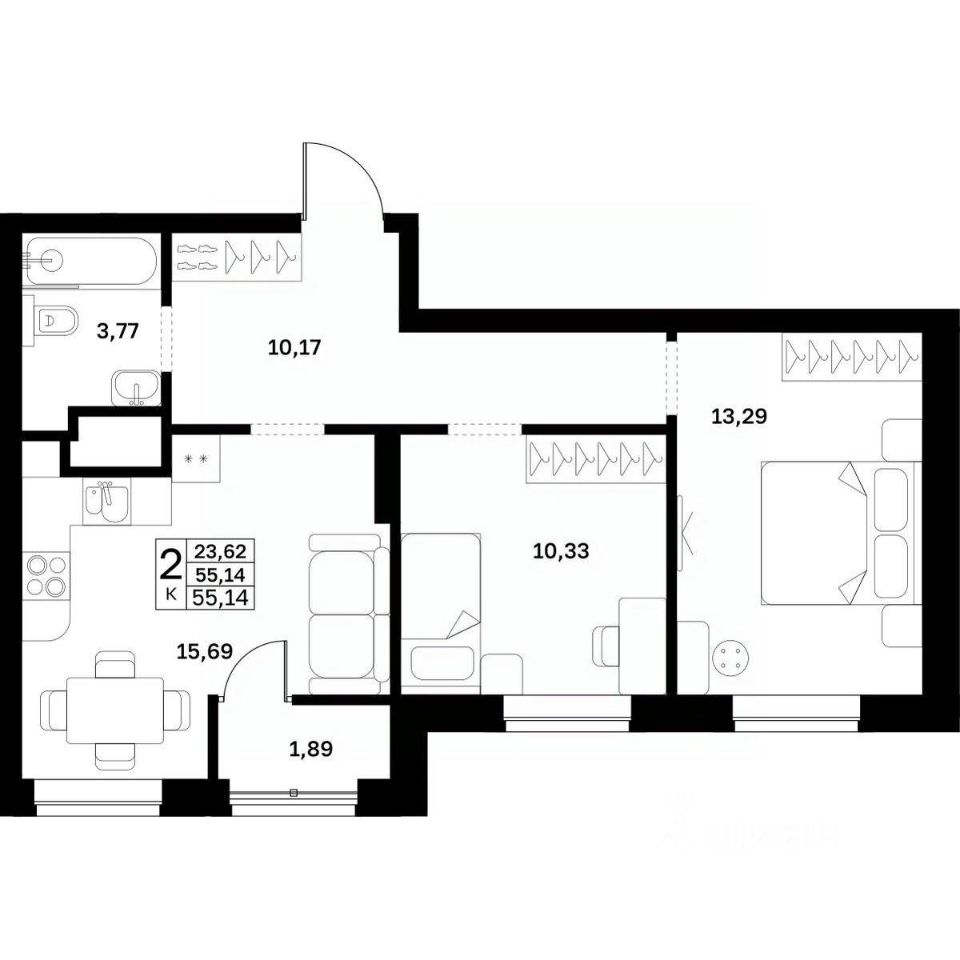 55,14 м²