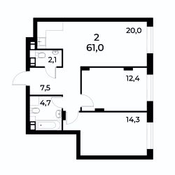 • Квартиры от 37,5 до 76 м2