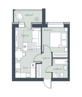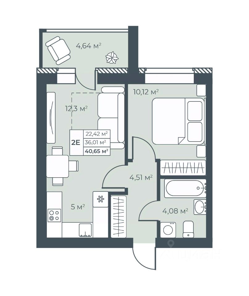 Общая площадь40,65 м²