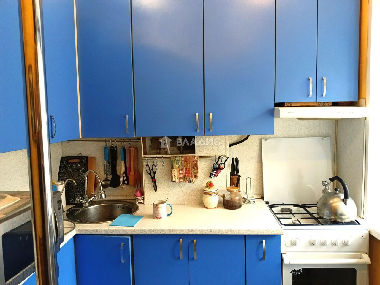 - Кухня — 6 кв. метров с функциональным кухонным гарнитуром, новой газовой колонкой и дополнительным холодильником под окном;