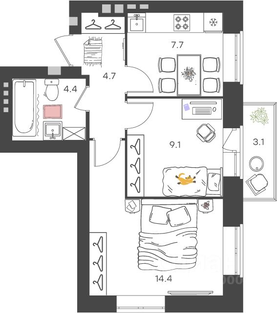 Общая площадь41,2 м²