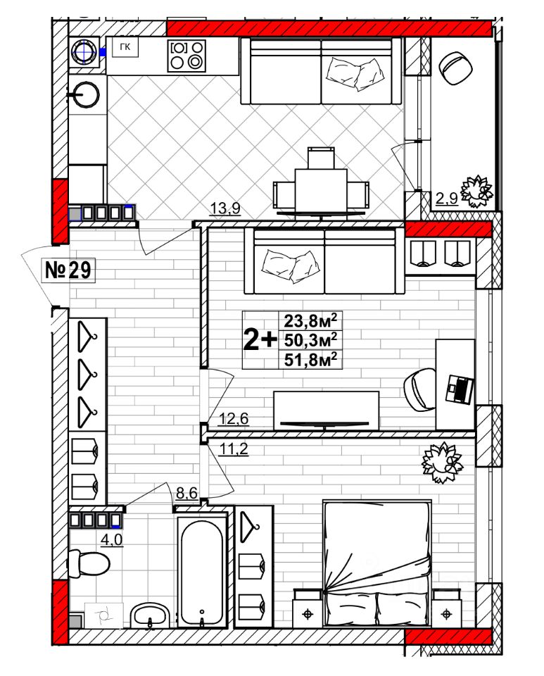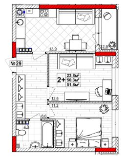 Общая площадь51,8 м²
