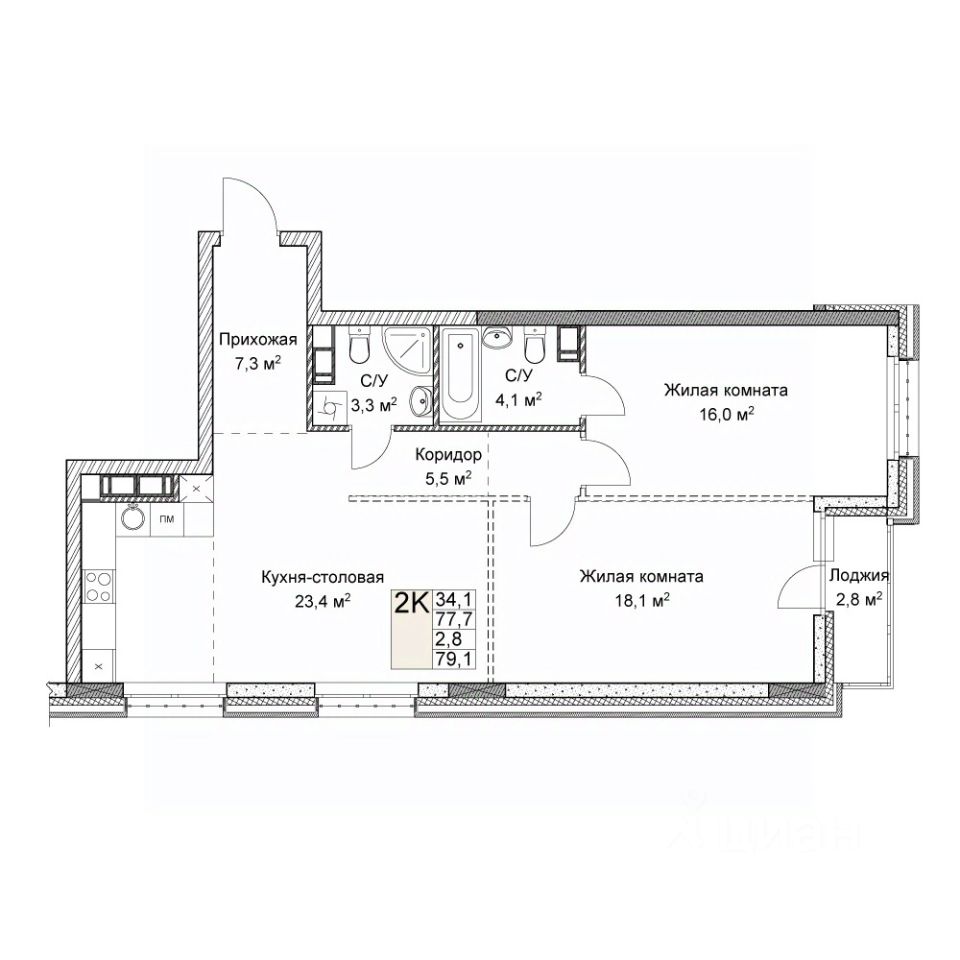 Общая площадь79,1 м²