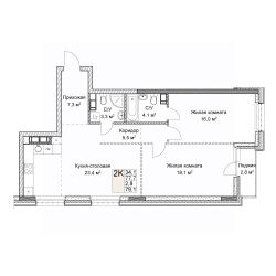 Квартира свободной планировки, 79,1 м²
