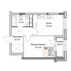 Общая площадь42,2 м²