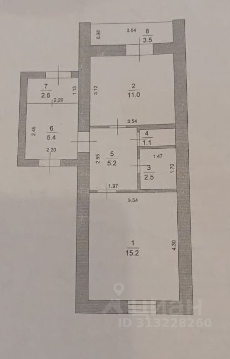 -общая плoщадь 42.9 кв.м.