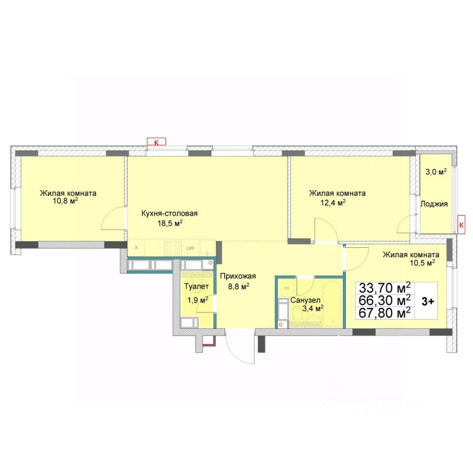 Общая площадь67,8 м²