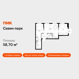 Продаётся 2-комн. квартира площадью 58,7 кв.м на 16 этаже 25 этажного дома (Корпус 10, Секция 1) проекта ПИК Савин парк. Светлый просторный подъезд на уровне земли, функциональная планировка, большие окна, c отделкой.