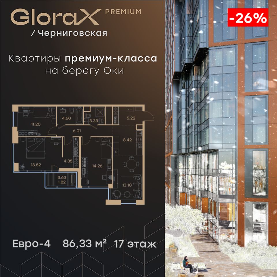 GloraX Premium Черниговская - новый жилой комплекс премиум класса в историческом центре Нижнего Новгорода, в котором объединились лаконичность архитектурной мысли, технологичность решений и внимание к деталям, присущее всем проектам компании GloraX. Проект для рационалистов, придающих большое внимание собственному комфорту и современным технологиям