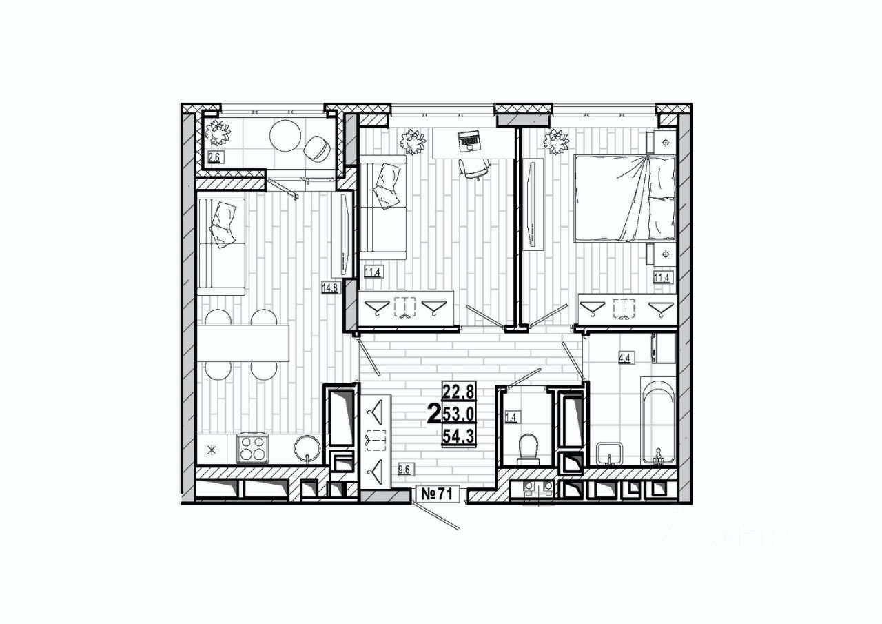 Продается 2 комнатная квартира на 9 этаже строящегося жилого комплекса комфорт-класса Дом на Маяковского от одного из крупнейших застройщиков Нижегородской области ГК ННДК. Квартиру можно купить по ипотеке. Квартира сдается в черновой отделке, но есть возможность за дополнительную плату сделать отделку под ключ. Рядом вся необходимая инфраструктура - магазины, школы, садики и парк. В ЖК будет закрытая безопасная территория с детской и спортивной площадками. Для автомобилей предусмотрена наземная парковка. В доме будет установлена станция очистки холодной воды. На -1 этаже можно купить сити-бокс (место для хранения габаритных и сезонных вещей).