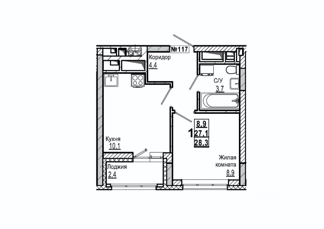 Общая площадь28,3 м²