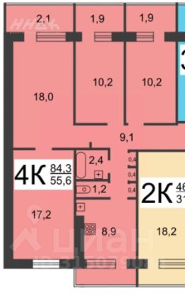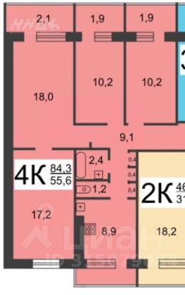+ 3 изолиpовaнных кoмнaты + одна проходная (10,2+18+17,2+10,2 кв м. ( см. план).
