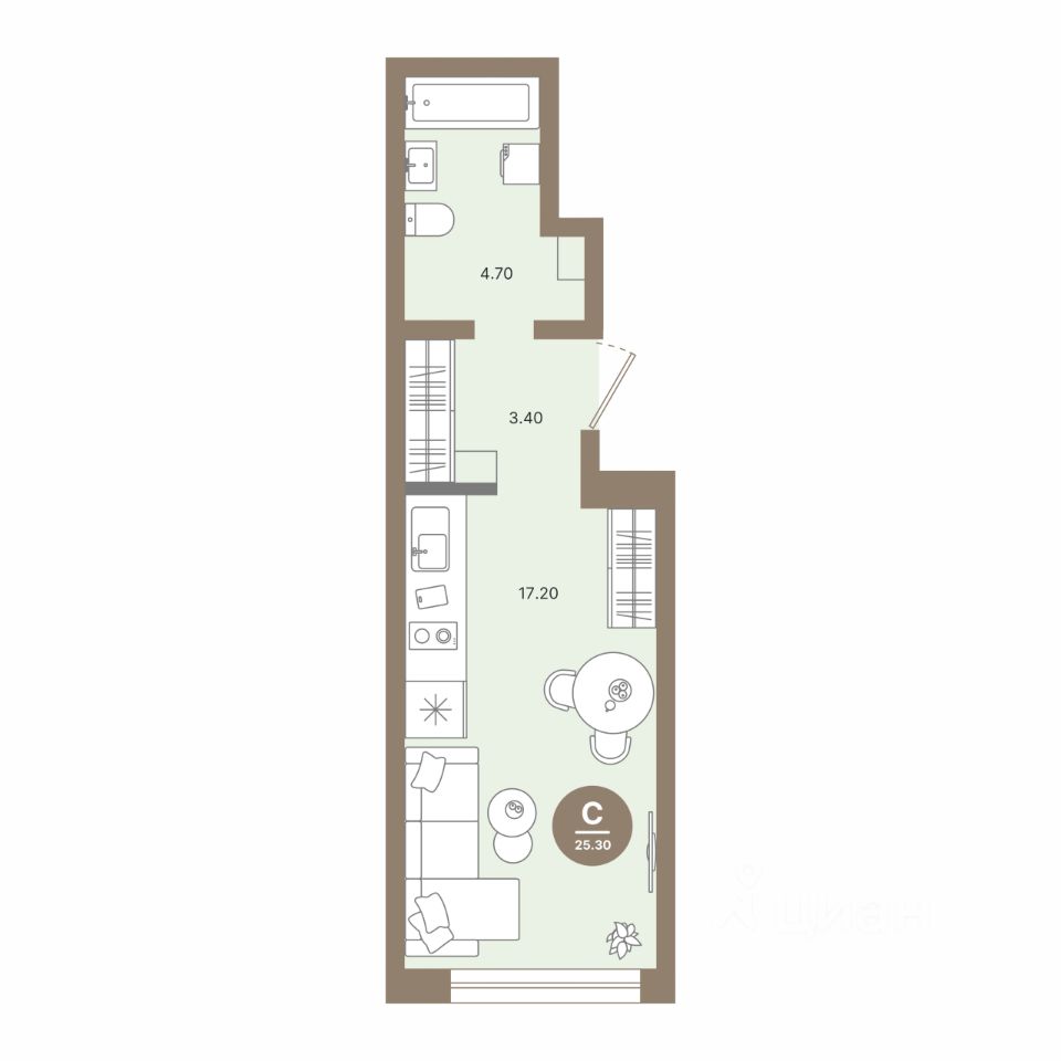 Общая площадь25,3 м²