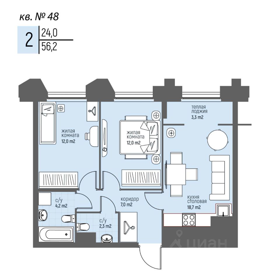 Общая площадь56,2 м²