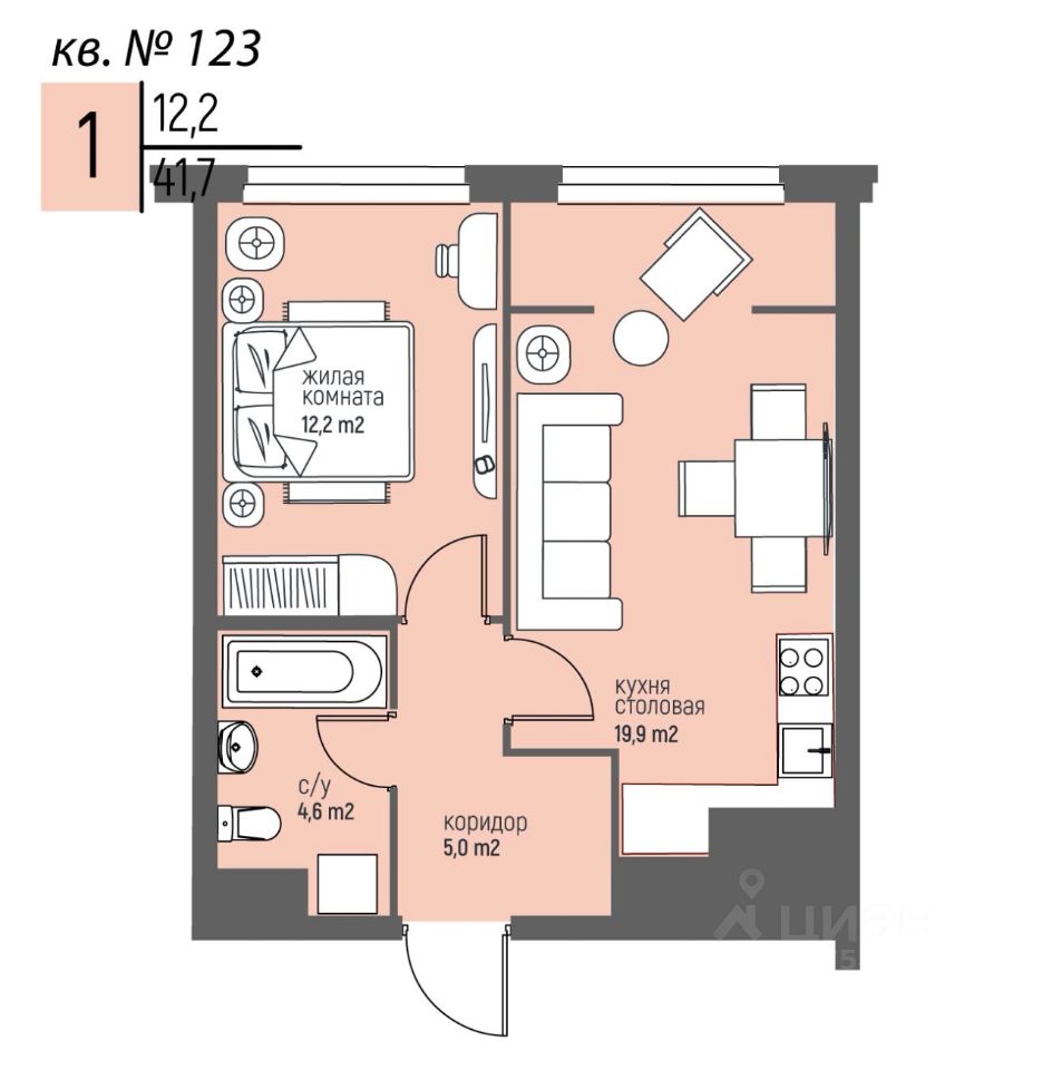 Общая площадь41,7 м²