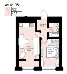 Общая площадь40,6 м²