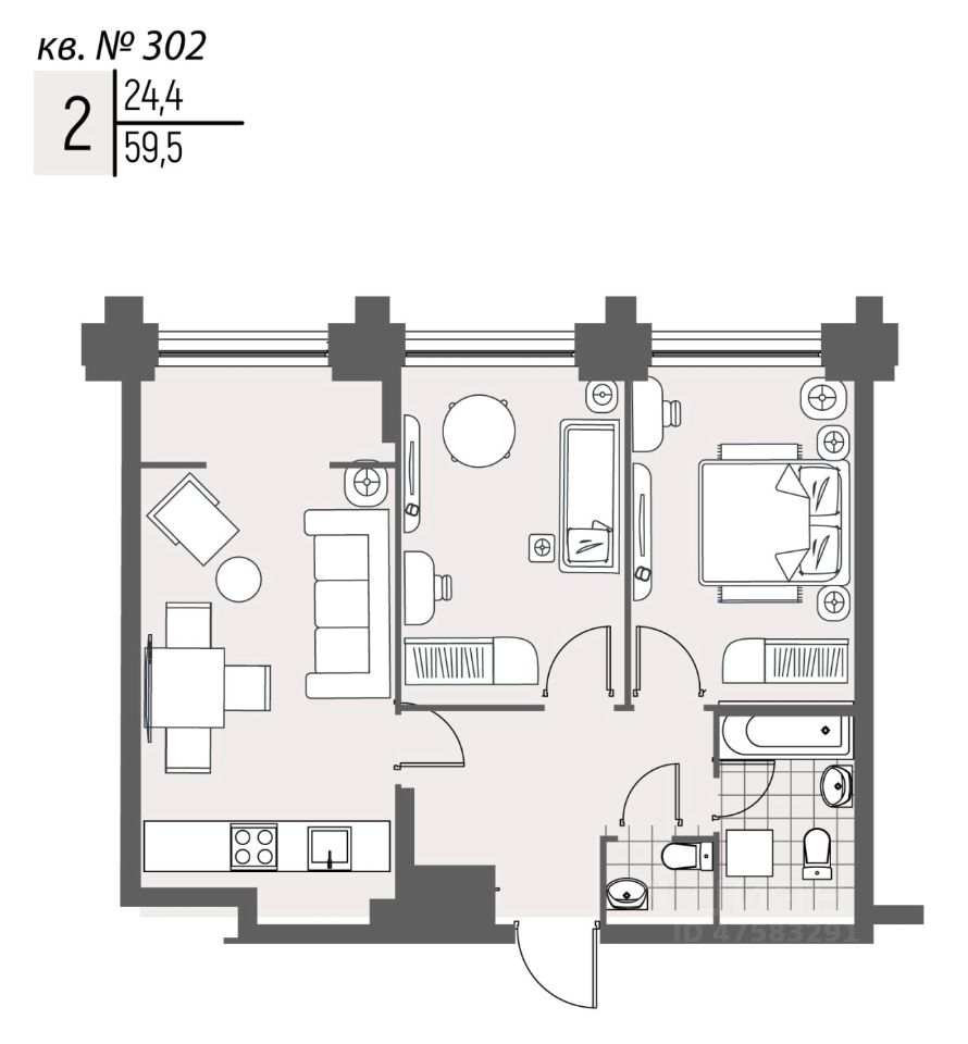 Общая площадь59,5 м²