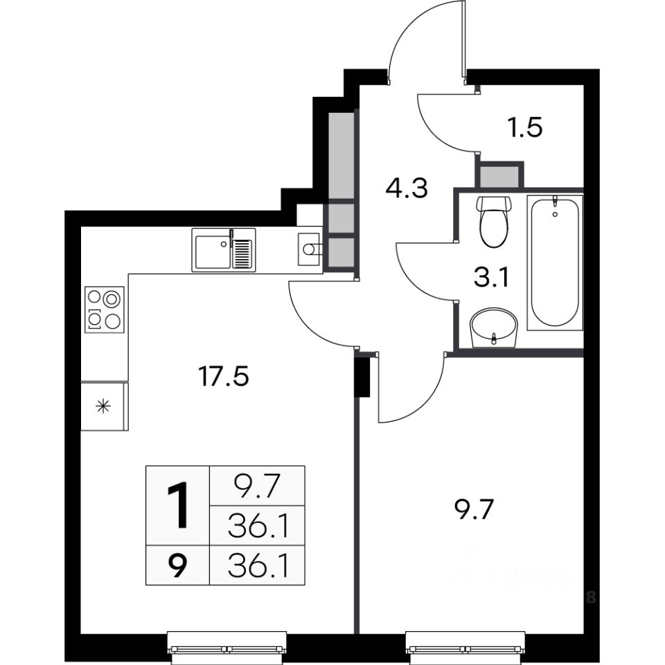Общая площадь36,1 м²