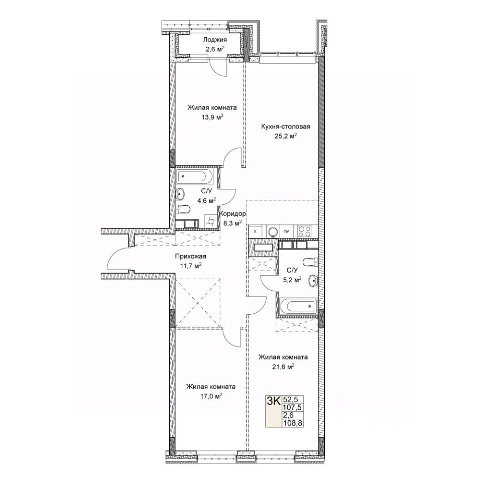 Общая площадь108,8 м²