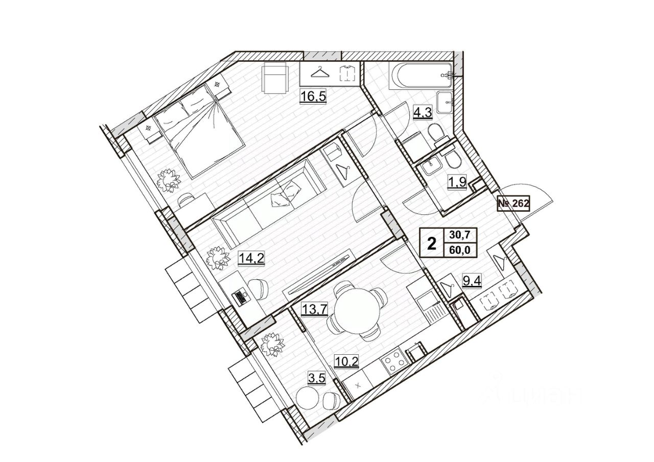 Общая площадь60 м²