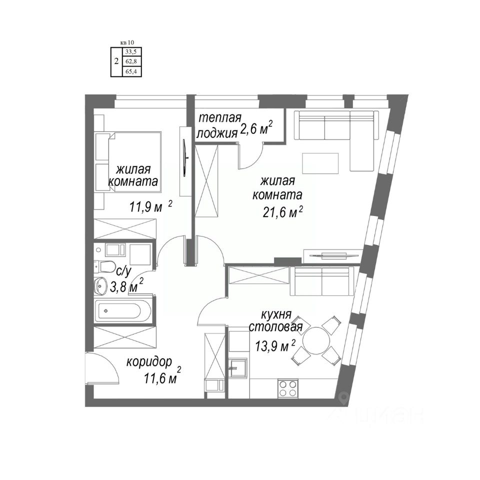 Продаётся 2-комнатная квартира в строящемся доме (Корпус 1), срок сдачи: I-кв. 2026, общей площадью 65.4 кв.м., на 3 этаже. В рамках проекта будет построен одноподъездный жилой дом на 64 квартиры со встроенно-пристроенными помещениями общественного назначения на первом этаже и подземной автостоянкой.