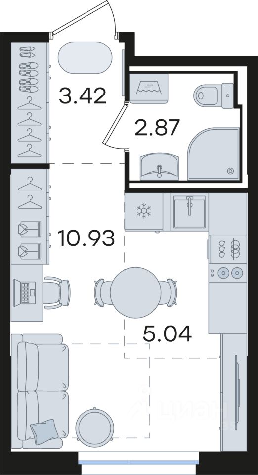 компактная студия; чистовая отделка; высокие потолки