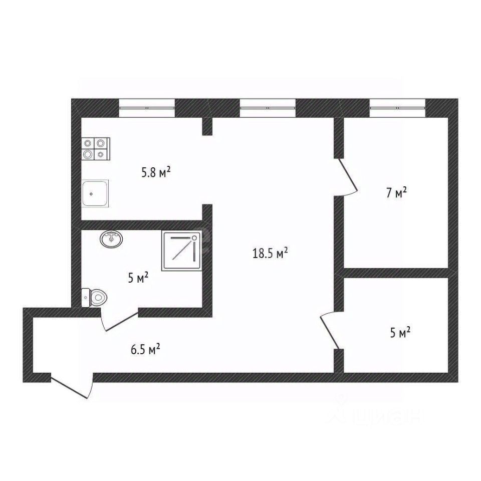 - Кухня: 5,8 кв. м.