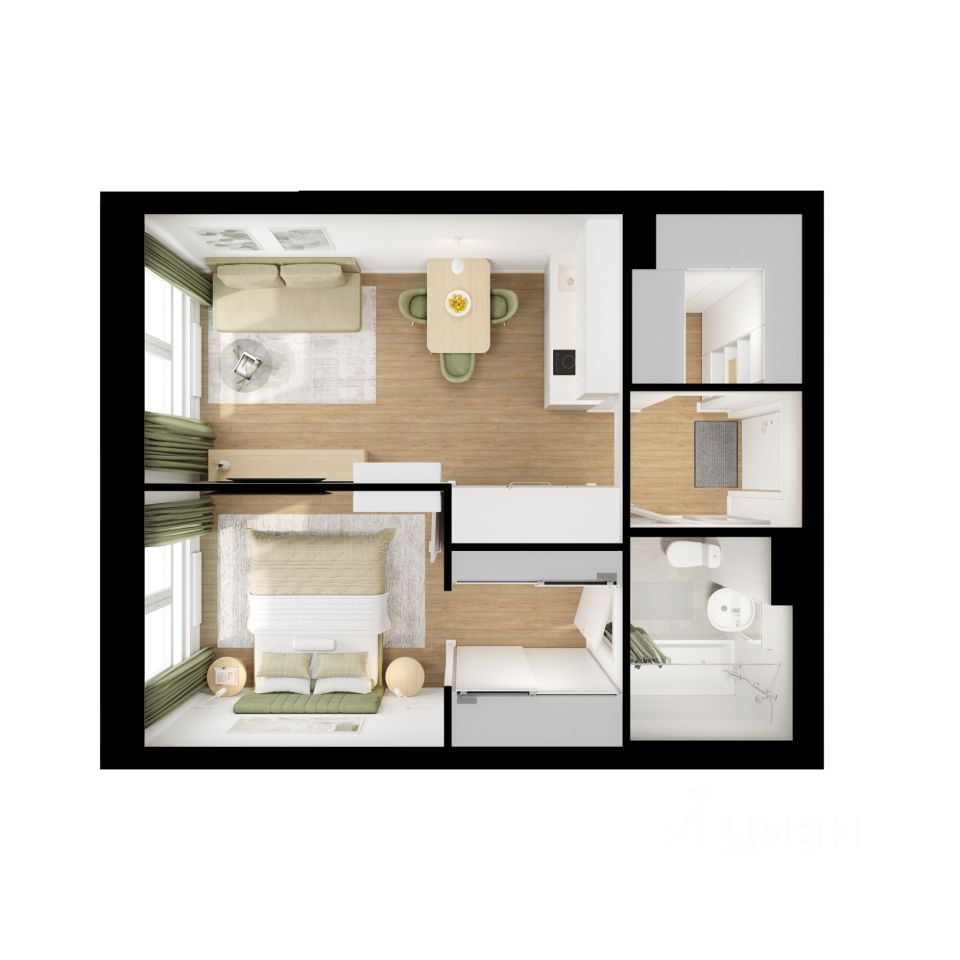 В квартирах тоже будет много солнечного света за счёт балконов и больших окон. Вы получите ключи от квартиры с уже готовой отделкой - можно заезжать и жить.