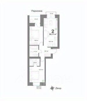 58,77 м²