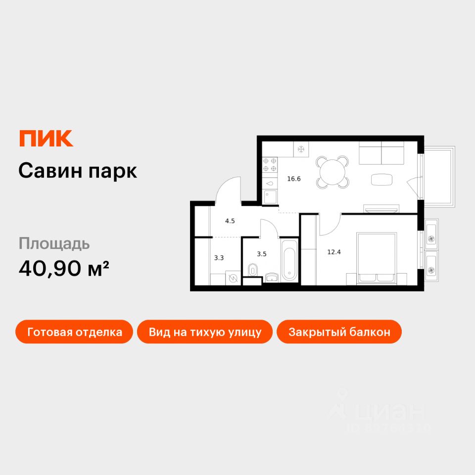 Продаётся 1-комн. квартира площадью 40,9 кв.м на 13 этаже 17 этажного дома (Корпус 7, Секция 1) проекта ПИК Савин парк. Светлый просторный подъезд на уровне земли, функциональная планировка, большие окна, c отделкой.