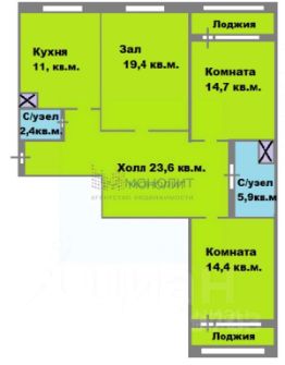 Комнаты изолированные, на разные стороны, два санузла, две лоджии, большой холл 23,6 кв.м.