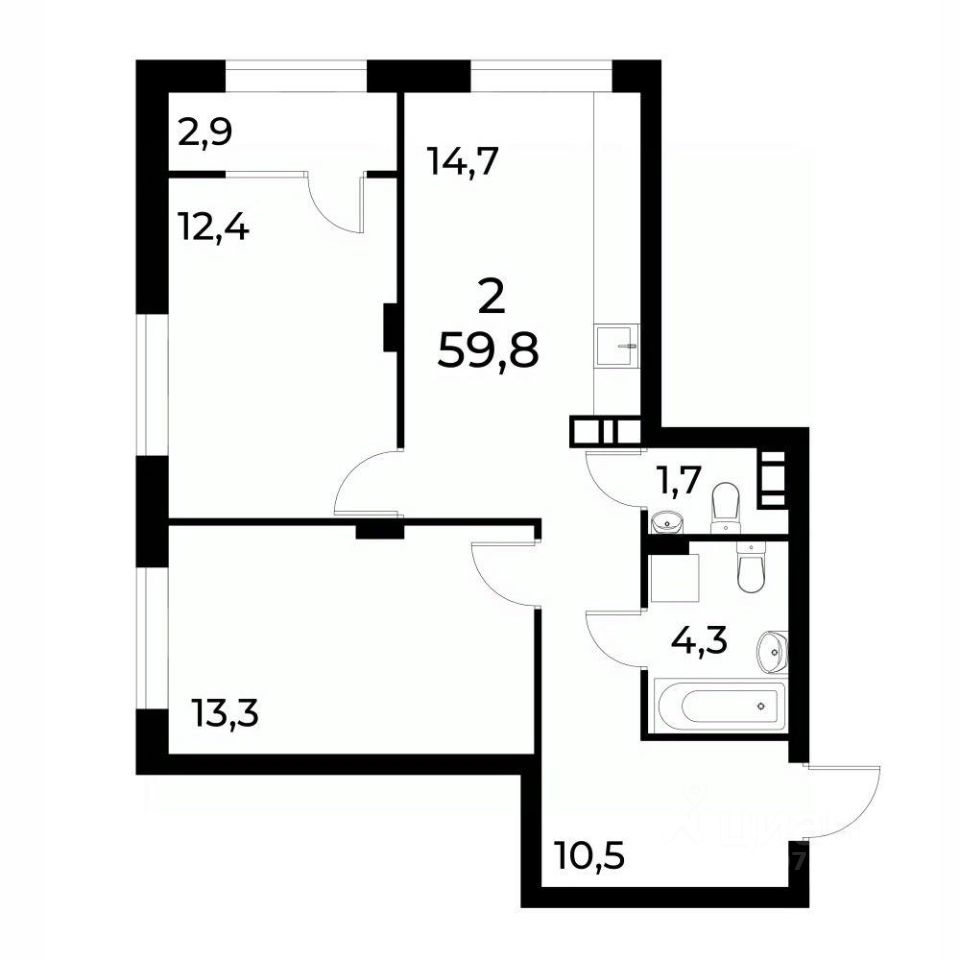 Продается 2-квартира с базовой, черновой отделкой, площадью 59,4 кв.м, на 3 этаже 19 этажного дома в ЖК Сормово Парк.