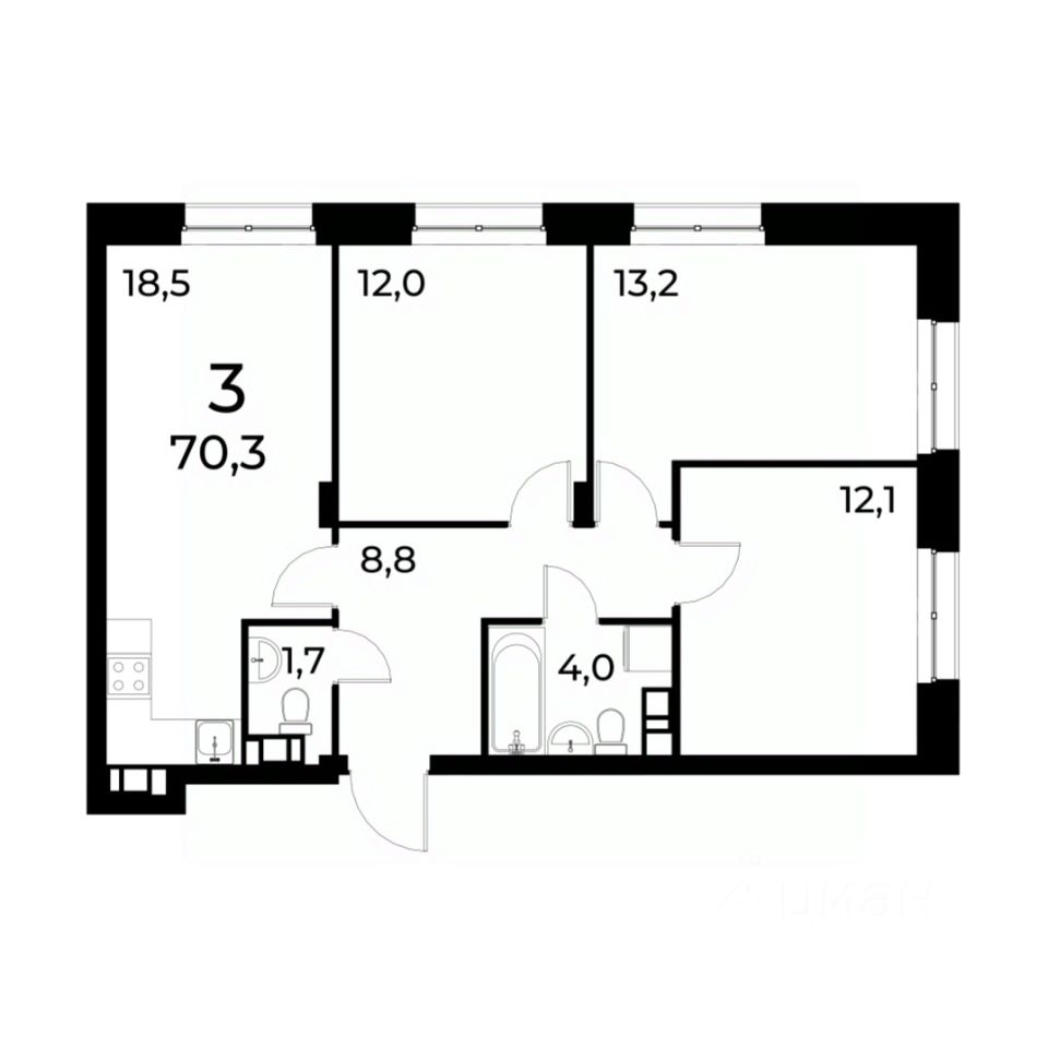• Квартиры от 39 до 71кв.м.