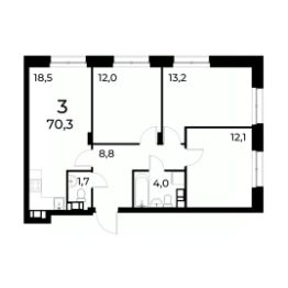 Продается 3 -комнатная квартира с чистовой отделкой, площадью 71 кв.м, на 2 этаже 20 этажного дома ЖК Патриот от застройщика ГК АГРОСПЕЦТЕХ