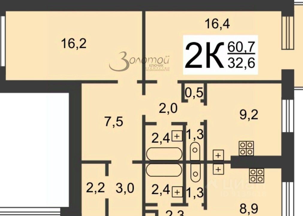 + общая площадь квартиры 60,7м2, жилая 32,6 м2,