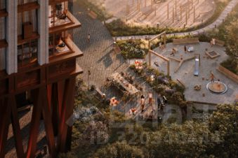 Архитектурный проект нового жилого комплекса был разработан именитым бюро "Остоженка". Отделка фасадов выполнена из кирпича и кортеновой стали, что в сочетании с панорамным остеклением, придает ему выразительный облик. Первый этаж запроектирован на высоте 13 метров. Таким образом, просторная входная группа имеет высоту потолков 10 метров, что делает ее интерьер уникальным. Благодаря расположению и продуманной архитектуре из каждой квартиры как на верхних, так и на нижних уровнях будут открываться живописные виды.