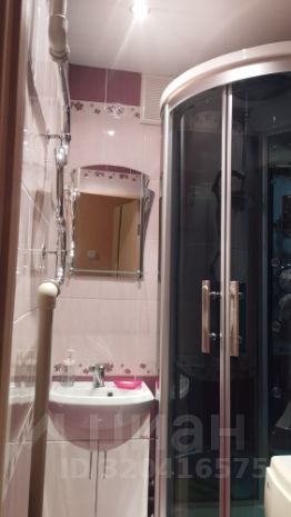 Ванная - душевая кабина, раковина с тумбой.