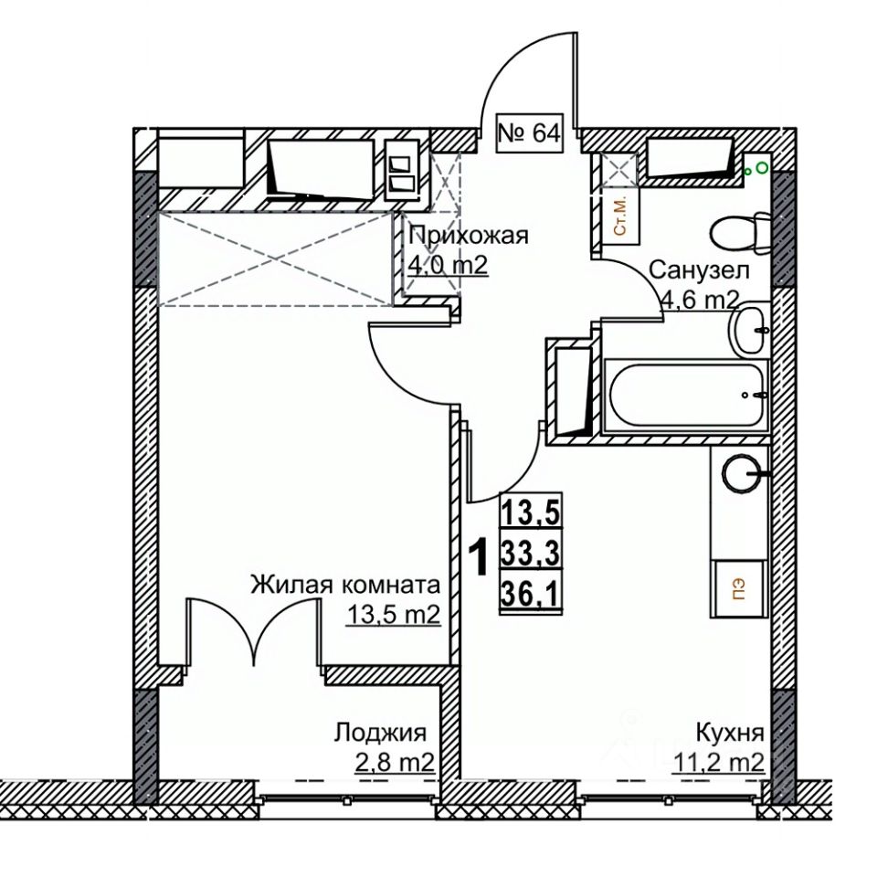 Общая площадь36,1 м²