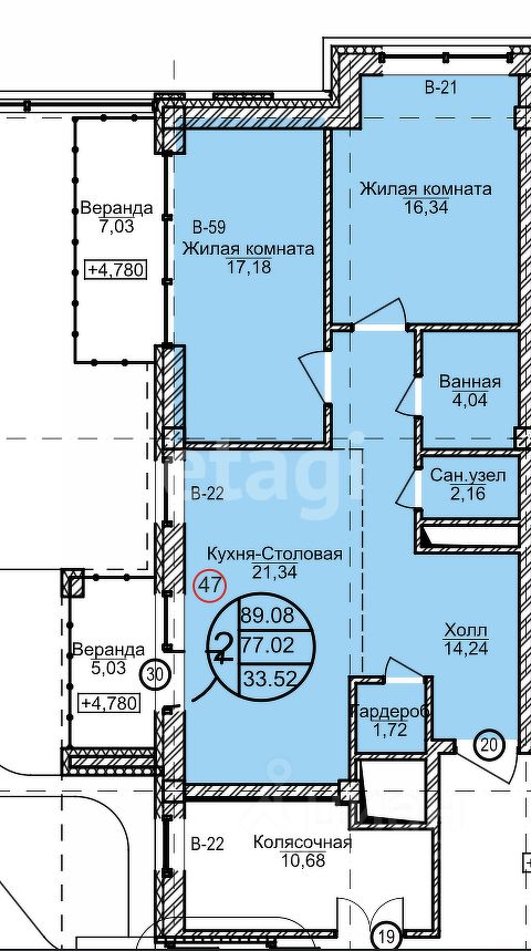 89 м² продуманного жизненного пространства с двумя изолированными комнатами.