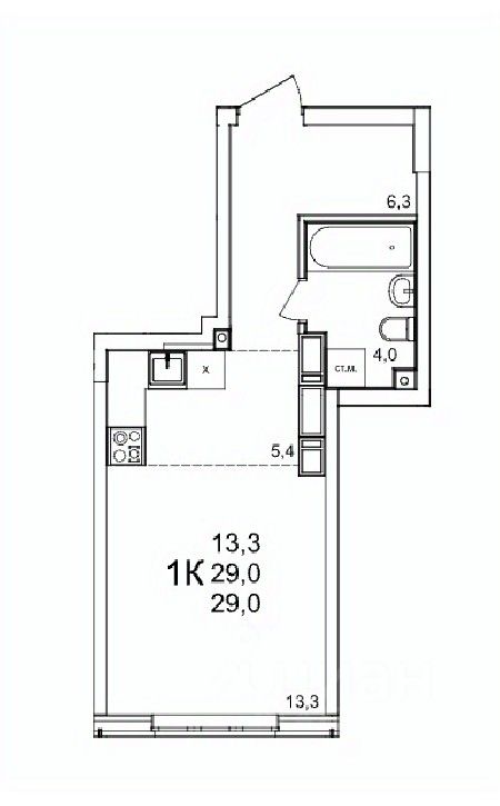 Общая площадь29 м²