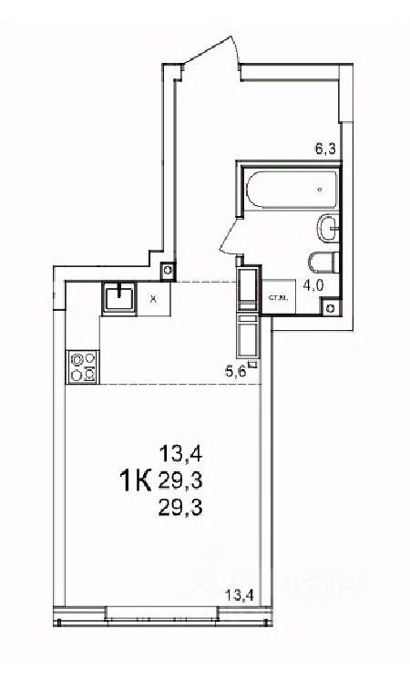 Общая площадь29,3 м²