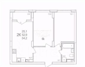2 изолированные комнаты 12,1м2 и 13м2