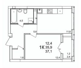 Продаётся 1-комнатная квартира в строящемся доме (53), срок сдачи: III-кв. 2027, общей площадью 37.1 кв.м., на 15 этаже. Расположение, транспортная доступность