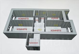 Большие комнаты по 16,6; 17,2; 17,3 кв.м, просторная прихожая 20 кв.м, где имеется ниша под большую гардеробную (прихожая условно разделена на 2 части, где можно раздеться, и отдельно между жилыми комнатами), кухня 12,4 кв.м, раздельные с/у и ванная комната.