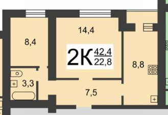 22,8 м²