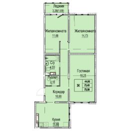 Общая площадь75,09 м²