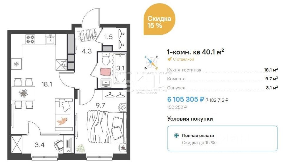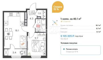 Общая площадь40,1 м²