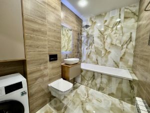Вся техника фирменная Gоrеnjе - новая и на гарантии фирменного магазина, все чеки в наличии! Отделка квартиры выполнена из материалов премиум-класса: на полу широкоформатный керамогранит 120*60, в комнатах водостойкий ламинат 33 класс с фаской толщиной 10 мм, премиум-класса. На стенах обои Viсtоriа Stеnоvа. Вся сантехника - Сеrsаnit, ванная 180*80. В санузле установлена стиральная машина Gоrеnjе.