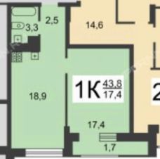 - Общая площадь: 43,8 м (включая лоджию).