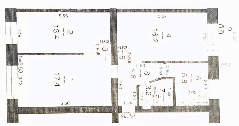 - Просторные комнаты: 17.4, 16.2, 13.4 м,